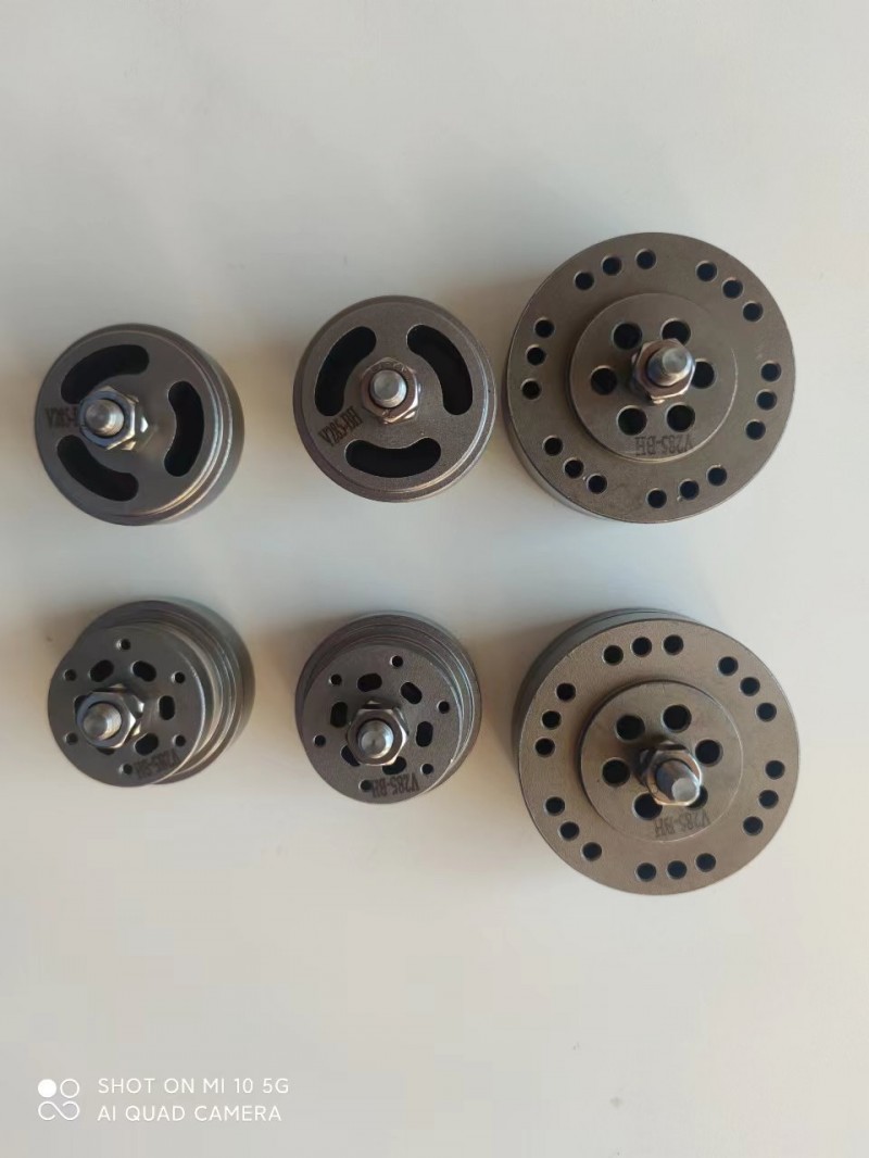 一级进气阀.一级排气阀.二级组合阀.公司目前生产的进排气阀已有一千多个品种规格,可配套排气量为0.12-250m3/min,压力可达到42MPa的各种型式、各类气体的活塞式压缩机,其主要易损件进排气阀阀片根据压缩机使用工况、压缩介质及用户要求可分别选用高强度合金钢、不锈耐酸耐热钢、PH15-7Mo、PEEK美国进口塑料等,PEEK进口塑料阀片具有抗腐、耐磨、耐高温、耐冲击、密封性能好、噪声低、重量轻和寿命长等特点。正常工作可达4000小时以上,已广泛应用在各行各业中。